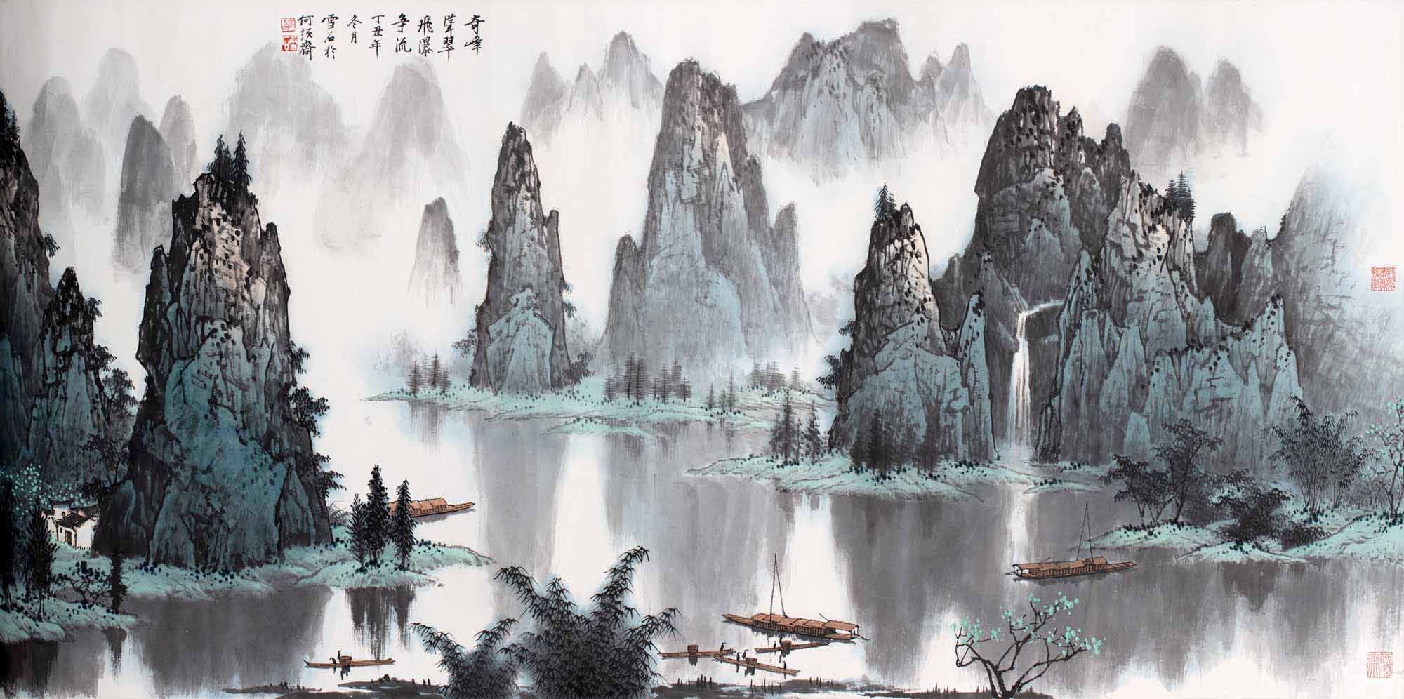 奇峰耸翠飞瀑争流